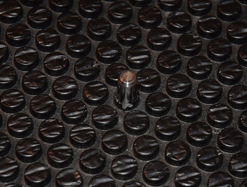 ターンテーブルシートは、1mm厚のバルサ板を三角形にカットしてそれを円周状に接着して円形にしたものに、カーボンが織り込まれた導電性の梱包用プチプチを貼り付けたものです。センタースピンドルの部分は1つのプチプチの膨らみを取り去り十字形にカットしてセンターシャフトと導電性のプチプチが密着して導通するようにします。これによってレコードは若干浮いたような状態で演奏され、ノイズと楽音が分離されやすくなりスピーカーからの音離れが良くなります。また、レコードの静電気はセンターシャフトからアースされるので、静電気に悩まされることがありません。